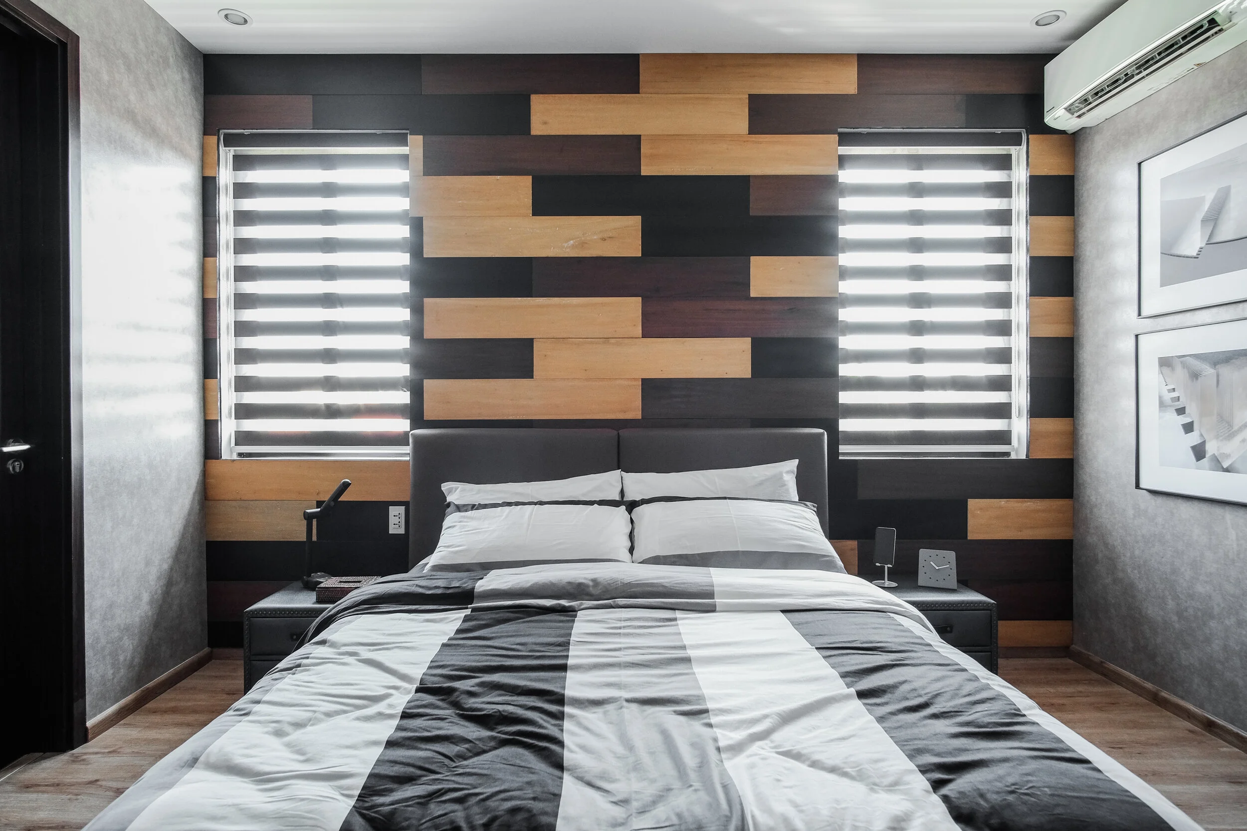 Having a wooden accent wall is enough to brighten up this bedroom! In addition we gave the client an ample amount of shelves for them to display their collection of Gundam.