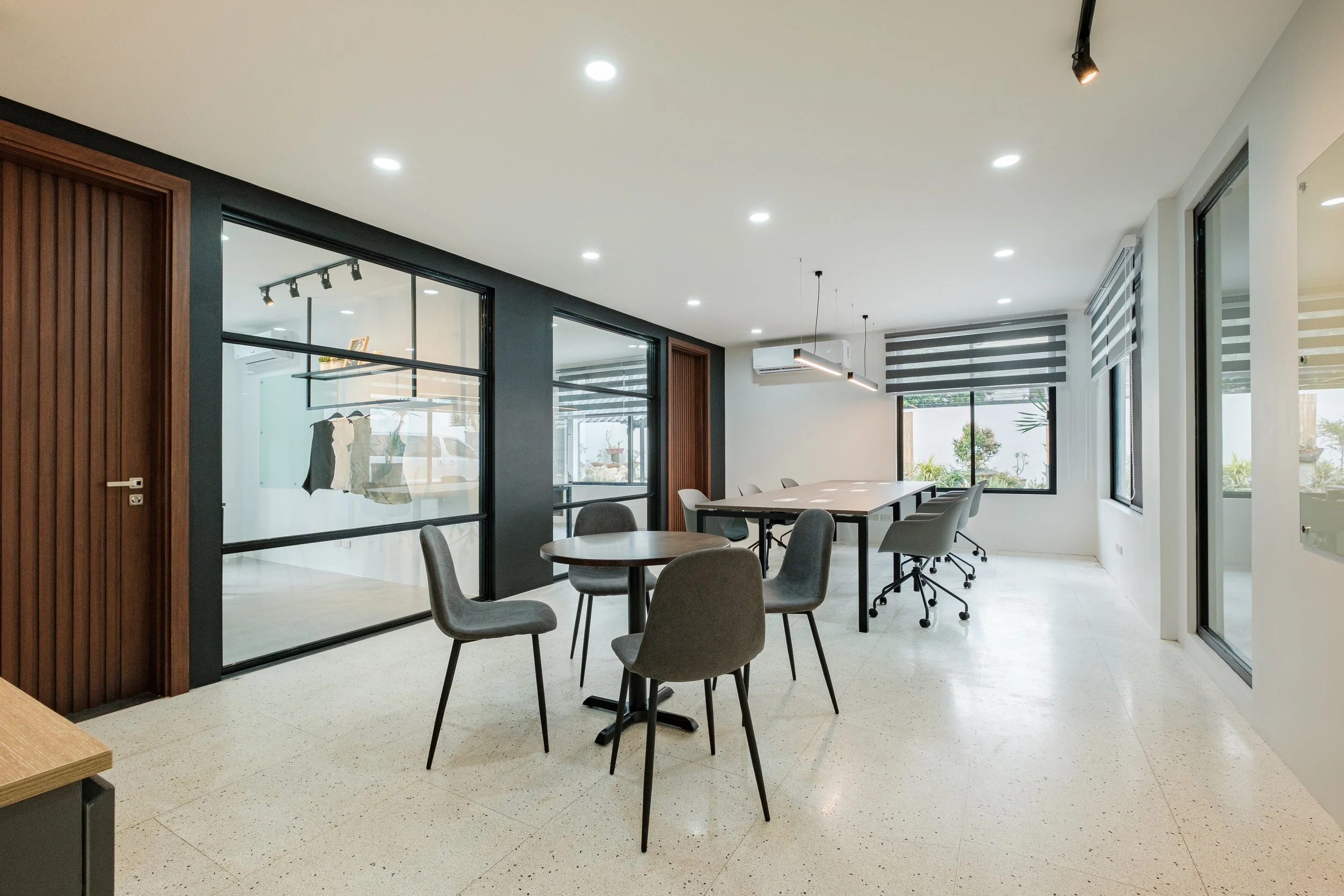 The main staff desk is oriented near the window where you have a view of the garden and a healthy amount of natural lighting during work hours. Since we also retained the terrazzo flooring, convenience outlets are strategically placed along the walls for easy access.
